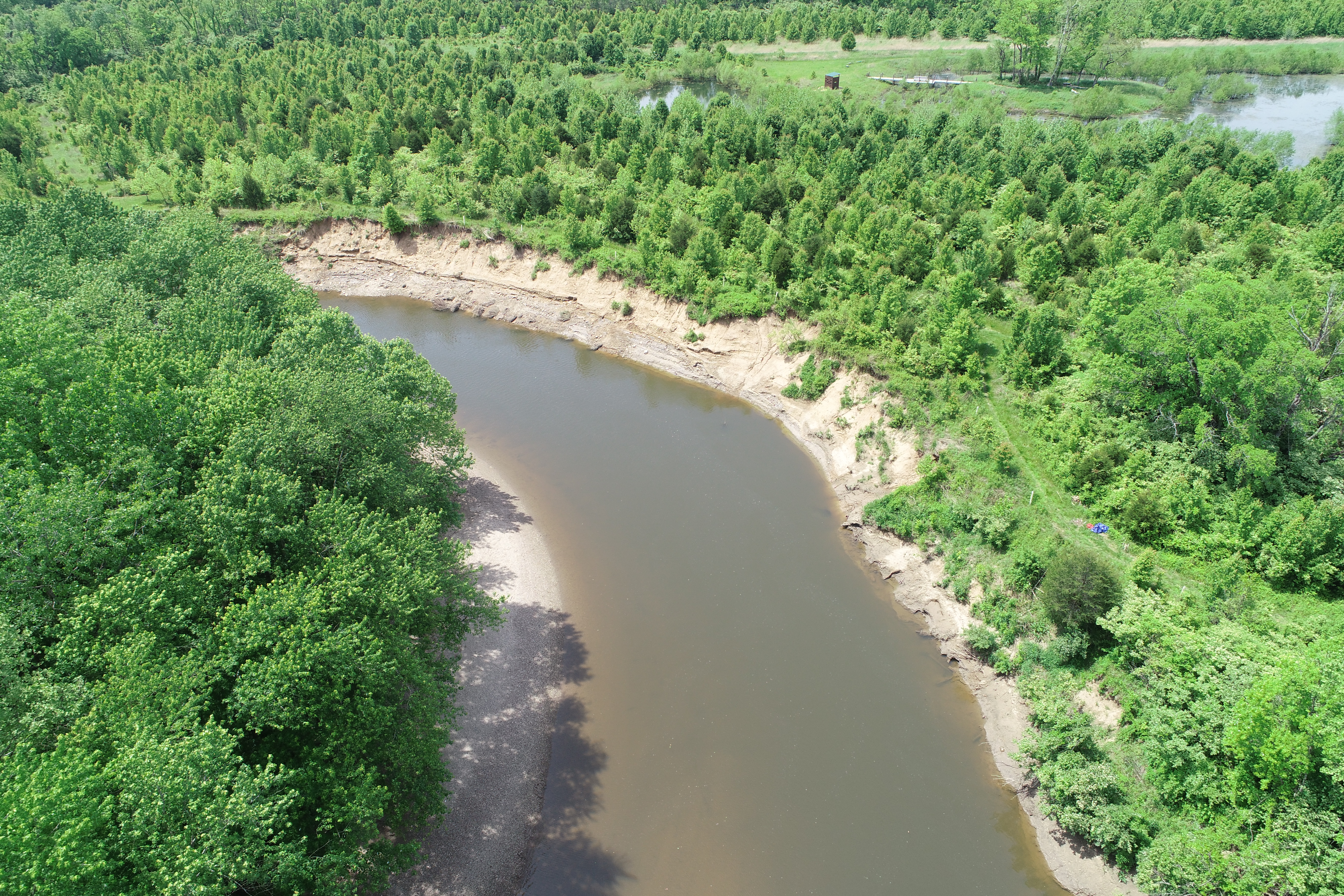 Clermont SWCD is working with local partners to restore ~1 mile along the lower East Fork Little Miami River (EFLMR) in Milford, Ohio (located in the Salt Run-EFLMR watershed). The project is funded through Ohio EPA’s Water Resource Restoration Sponsor Program (WRRSP) and sponsored by the City of Akron. This site is included on Ohio EPA’s list of impaired streams due to the severe stream bank erosion and sedimentation occurring along this river stretch. The failing stream banks have caused significant property loss and the high loads of sediment are degrading stream habitat and water quality. Over the years, the abundance and diversity of native fish, mussels and other species has declined.