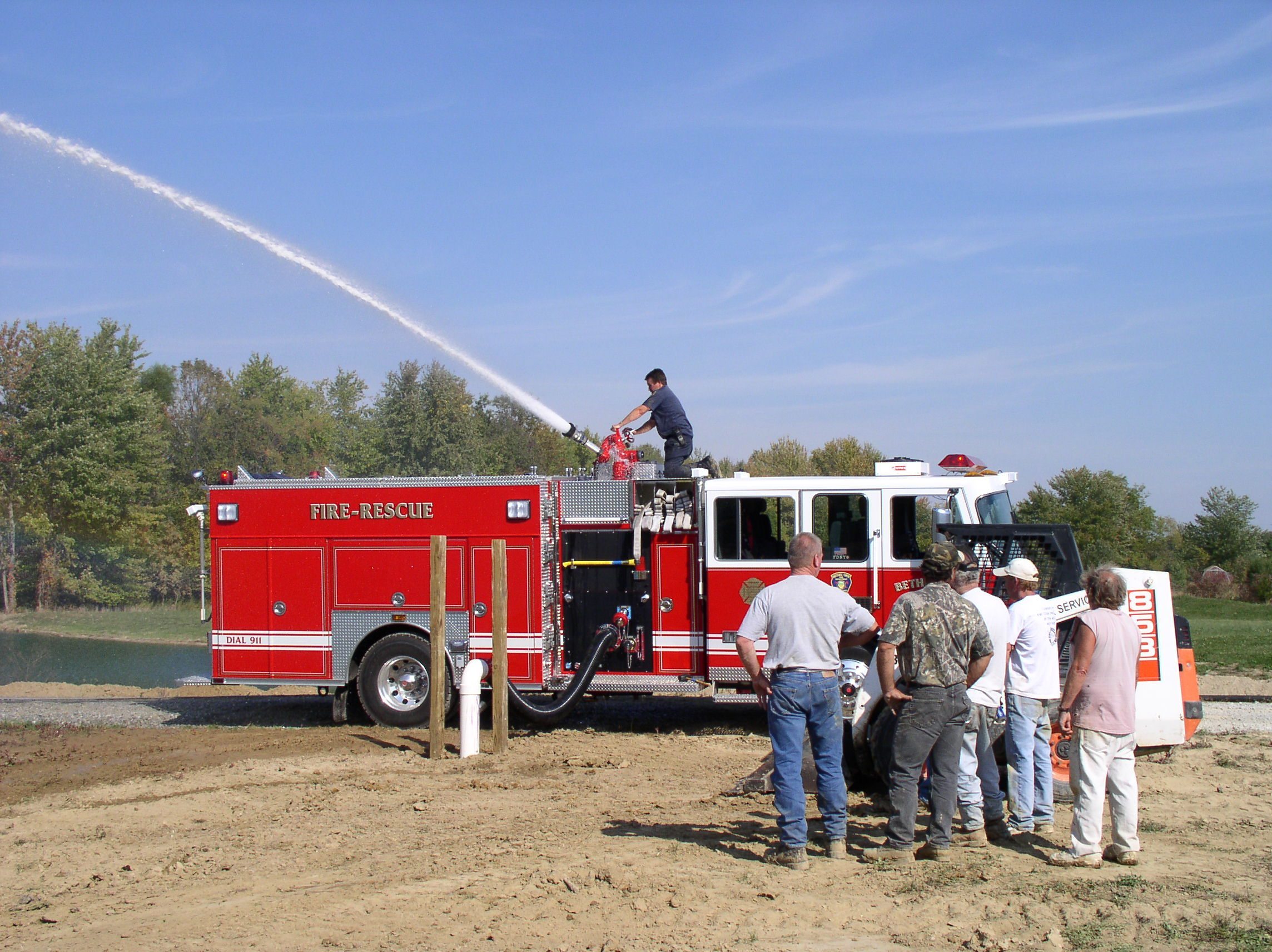 In areas with pressurized fire hydrants, dry hydrants can also serve as a supplemental or backup source of water in the event that the pressurized system should be insufficient or fail. A fire pumper truck can siphon water through the dry hydrant device to fight a fire on-site or to fill fire tanker trucks, which can transport water to fight a nearby fire. Generally, a minimum pond depth of 7-8 ft. is required for installation.