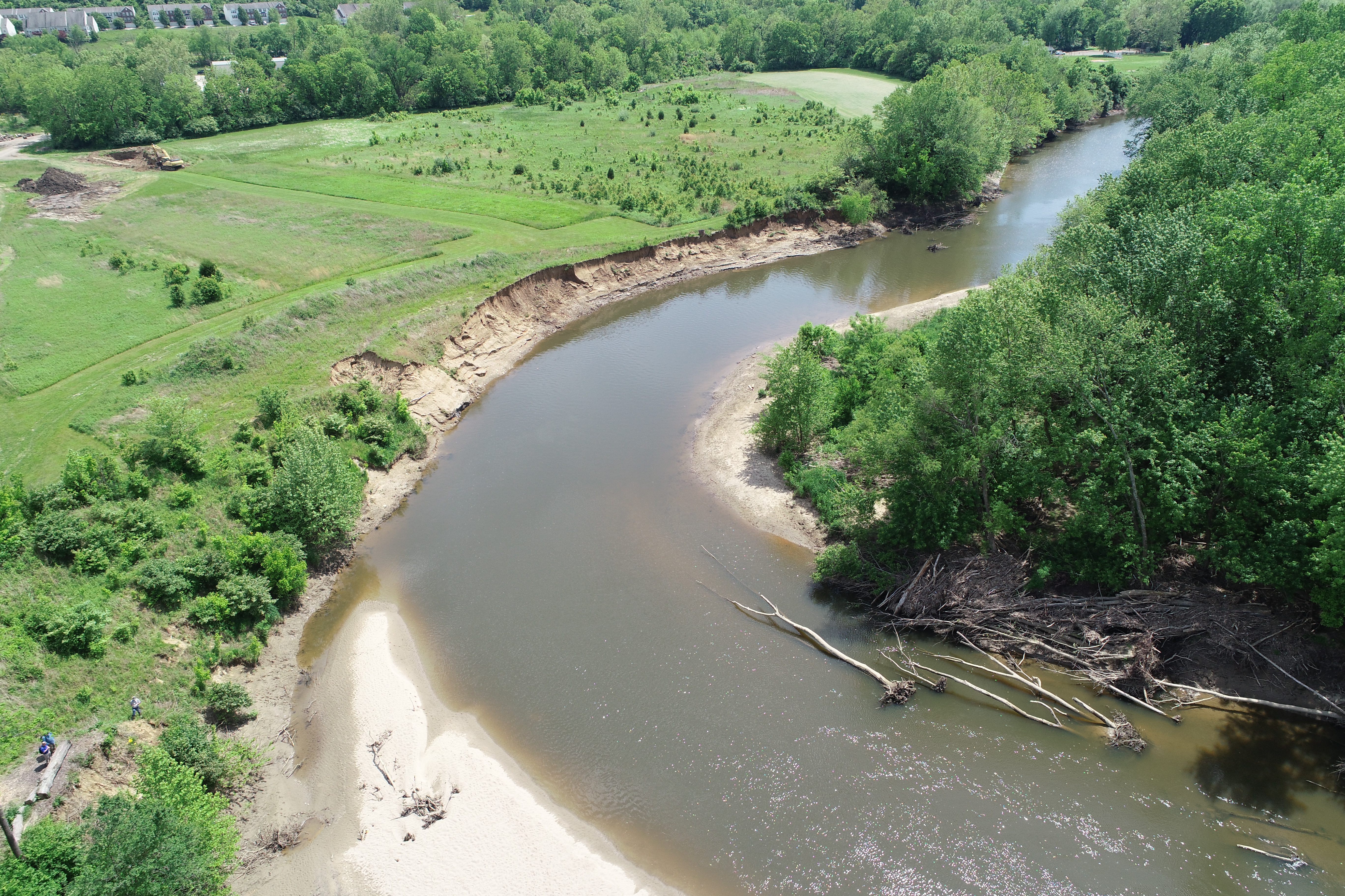 Clermont SWCD is working with local partners to restore ~1 mile along the lower East Fork Little Miami River (EFLMR) in Milford, Ohio (located in the Salt Run-EFLMR watershed). The project is funded through Ohio EPA’s Water Resource Restoration Sponsor Program (WRRSP) and sponsored by the City of Akron. This site is included on Ohio EPA’s list of impaired streams due to the severe stream bank erosion and sedimentation occurring along this river stretch. The failing stream banks have caused significant property loss and the high loads of sediment are degrading stream habitat and water quality. Over the years, the abundance and diversity of native fish, mussels and other species has declined.